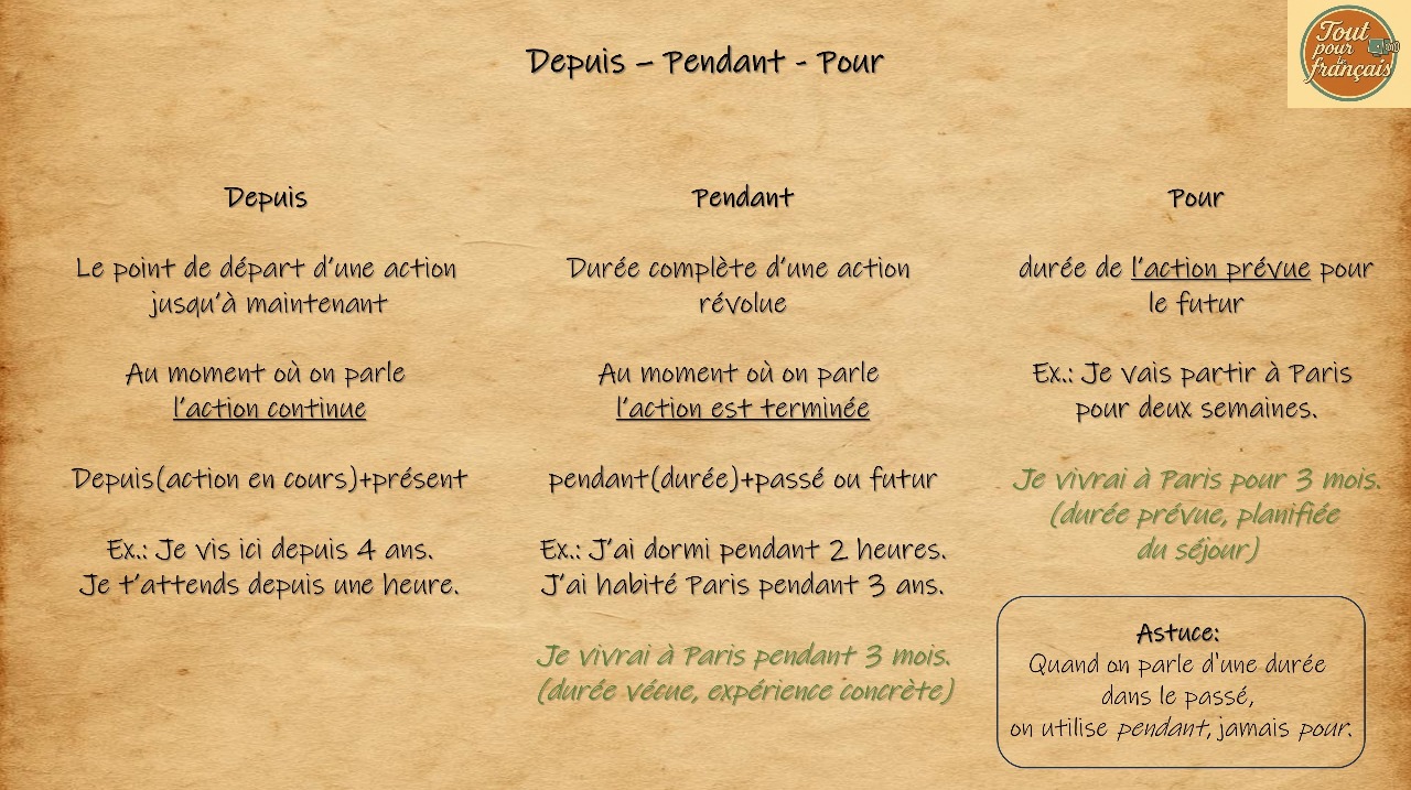 DEPUIS-PENDANT-POUR 2026-01-12 08:21 Vidéo Activités Pour vs Pendant Depuis vs Pendant Depuis, pendant ou pour?