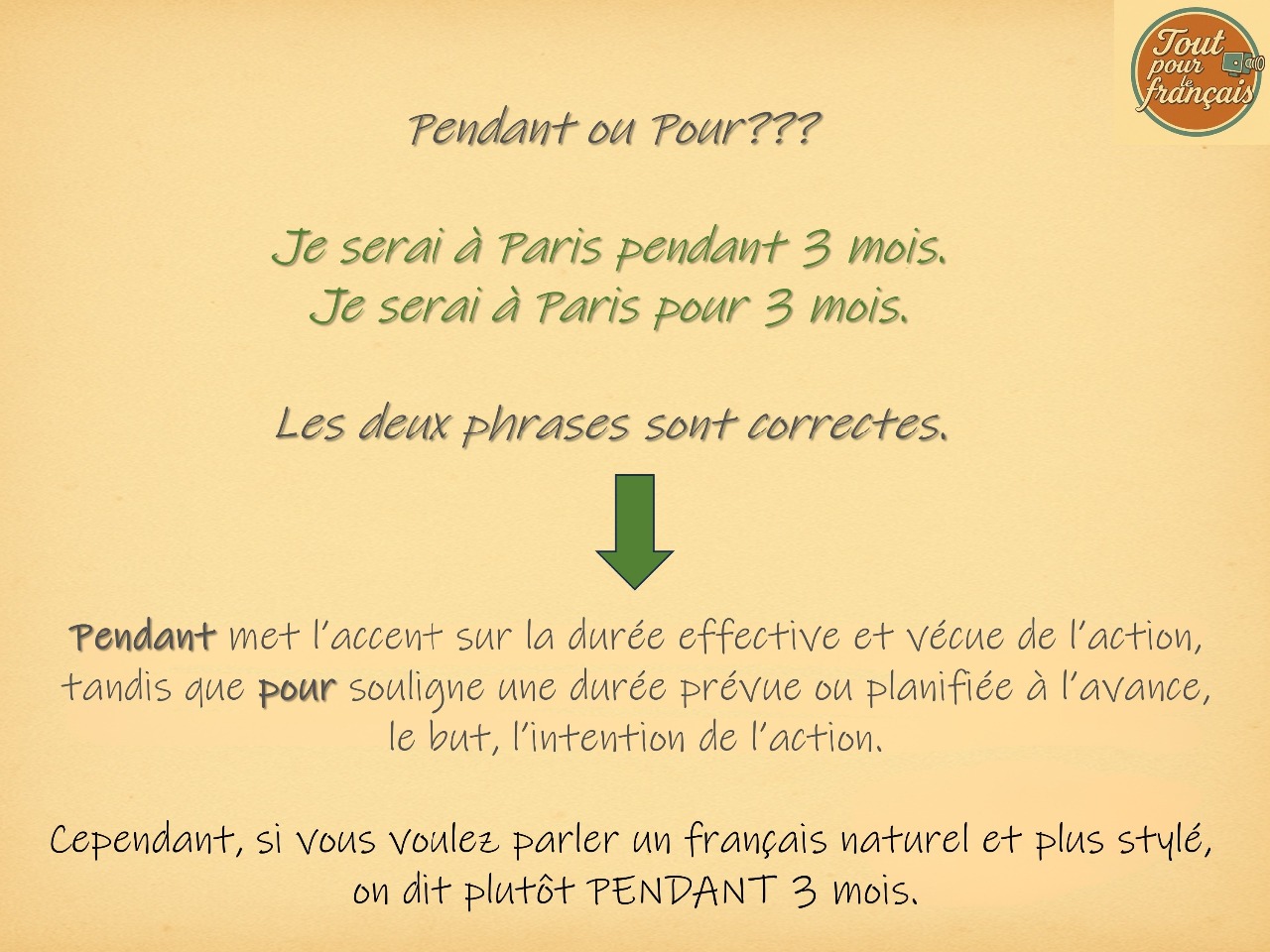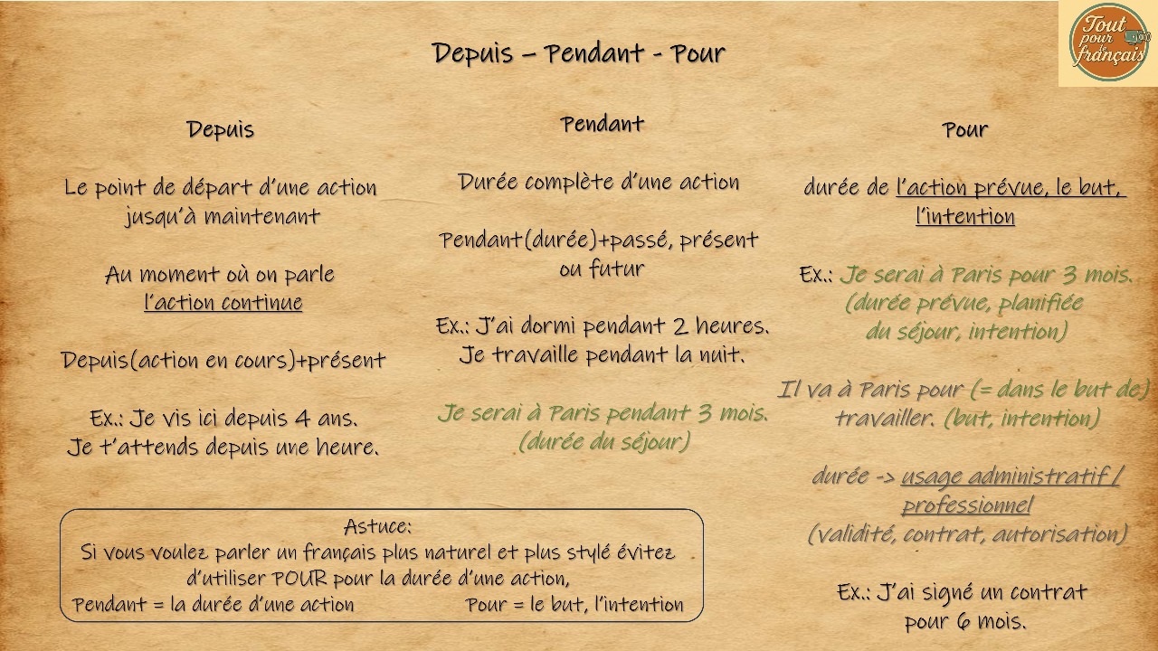 DEPUIS-PENDANT-POUR 2026-01-12 08:21 Vidéo Activités Pour vs Pendant Depuis vs Pendant Depuis, pendant ou pour? Mon quiz!!!