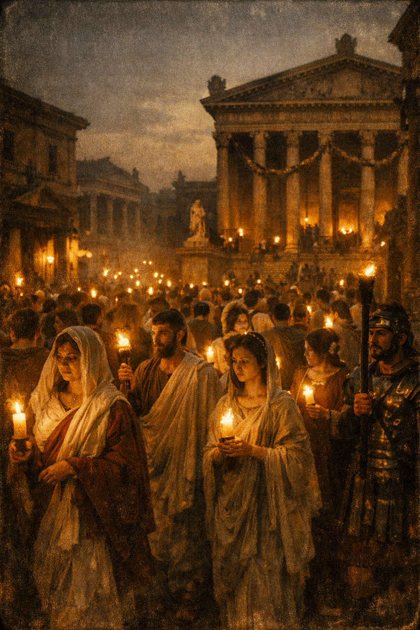 Toute la nuit, les croyants parcouraient les rues de Rome en agitant des flambeaux. En 472, le pape Gélase 1er décide de christianiser cette fête qui deviendra la célébration de la présentation de Jésus au temple. On organise alors des processions aux chandelles le jour de la Chandeleur, selon une technique précise. Chaque croyant doit récupérer un cierge à l’église et le ramener chez lui en faisant bien attention à le garder allumé. Un dicton de Franche-Comté dit d’ailleurs: