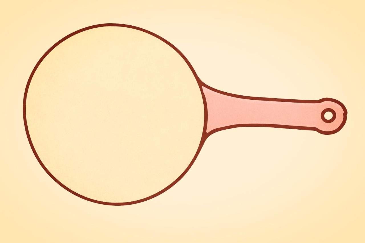 L'image d'une grande poêle (Découpez un carton jaune en forme de crêpe et placez-le sur la poêle)