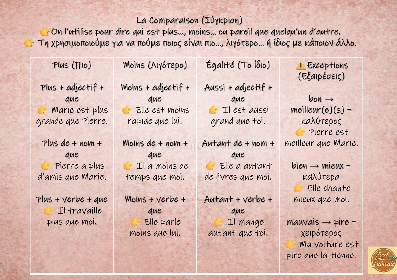 LA COMPARAISON-LE SUPERLATIF Activité 1 Activité Comparaison-Supérlatif Activité 2 Activité 3 Comparatif ou superlatif? Quiz Le comparatif et le superlatif (mettez en order la phase) Le comparatif et le superlatif Mieux vs Meilleur Texte avec le superlatif Superlatif Activité 4 Aussi vs Autant Bien, Mieux, Bon, Meilleur Activité de révision Répondez aux questions