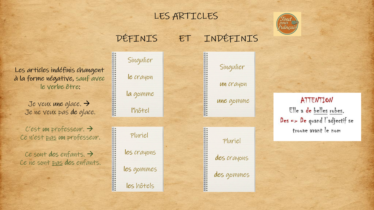 Les sports et les instruments de musique avec les articles (Consultez aussi cette page):